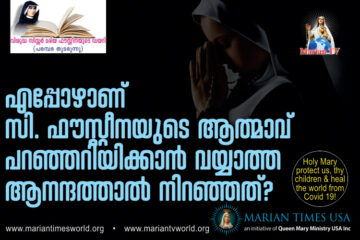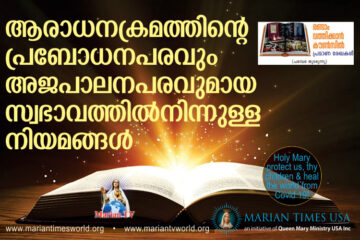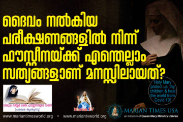 1887 ജൂലൈ മാസത്തിലാണ് വി. കൊച്ചുത്രേസ്യ വി. കുര്ബാന ആദ്യമായി സ്വീകരിച്ചത്. സെന്റ് പീയറി കത്തീഡ്രലില് വച്ച്. കുര്ബാന കഴിഞ്ഞപ്പോള് അവളുടെ കുര്ബാനപ്പുസ്തകത്തില് നിന്ന് […]