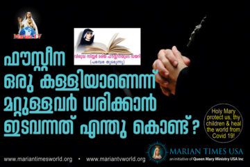 പബ്ലിയൂസിന്റെ പ്രബോധനമനുസരിച്ച് അവര് ക്രിസ്ത്യാനികളായിത്തീരുകയും നാളുകളായി തങ്ങള് ആഗ്രഹിച്ചിരുന്ന ആ മഹാദാനം മാനസാന്തരത്തിന്റെ ഫലമായി സ്വന്തമാക്കുകയും ചെയ്തു. എന്റെ ജ്ഞാനസ്നാനസമയത്ത് അവരെനിക്ക്’ഫിലോമിന’ ‘പ്രകാശത്തിന്റെ പുത്രി’ […]