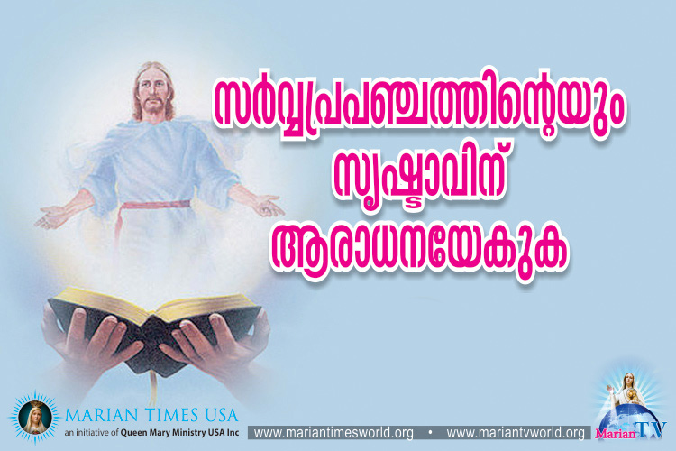 ദൈവത്തിന്റെ മഹത്വവും സൃഷ്ടപ്രപഞ്ചത്തിന്റെ നന്മയും തിരിച്ചറിയുന്ന മനുഷ്യന് നന്ദിയുടെ ഹൃദയവികാരങ്ങൾ ഉയർന്നുവരിക സാധാരണമാണ്. ഭൂമിയുടെ പരപ്പും ആഴിയുടെ ആഴങ്ങളും അനന്തമായ വിഹായുസ്സും ഒളിപ്പിച്ചുവയ്ക്കുന്ന രഹസ്യങ്ങൾ അജ്ഞത എന്ന പരിമിതിയിലേക്കല്ല, മറിച്ച്, ബുദ്ധിയുടെ പരിമിതമായ അറിവിനുപരിയായ ഒരു തലത്തിലേക്കാണ് മനസ്സിനെ കൊണ്ടുപോകേണ്ടത്. അവിടെ ജീവിതം മുഴുവനും ഒരു ആരാധനയായി മാറേണ്ടതുണ്ട്. നമ്മുടെ ഹൃദയമെന്നൊരു പ്രപഞ്ചത്തിൽ, ദൈവം ക്രമീകരിച്ചിരിക്കുന്ന അതിരുകൾ നാം തിരിച്ചറിയേണ്ടതുണ്ട്. പ്രലോഭനങ്ങളുടെ വൻതിരമാലകളും, തിന്മയുടെ കൂരിരുട്ടുനിറഞ്ഞ രാത്രികളുമൊക്കെ ദൈവപരിപാലനയെന്ന കാരുണ്യത്തിന് മുന്നിൽ അടിയറവുപറയേണ്ടതുണ്ട്. അവിടെ പാപവും തിന്മകളും നാമെന്ന മനുഷ്യരുടെ മുഖാവരണം അണിയാതിരിക്കാൻ നാം ശ്രദ്ധിക്കേണ്ടതുണ്ട്. നമ്മിലെ തിന്മകളെ അകറ്റി തിരിച്ചറിവുള്ള മനുഷ്യരാകാൻ നൂറ്റിനാലാം സങ്കീർത്തനവിചാരങ്ങൾ നമ്മെ സഹായിക്കട്ടെ. നന്ദിയുള്ള ഹൃദയങ്ങളിൽനിന്നും, നന്മവിരിയുന്ന മനസ്സുകളിൽനിന്നും വരുന്ന ആരാധനയുടെ ഗീതങ്ങളിൽ ദൈവം സംപ്രീതനാണ്. കടന്നുപോകുന്ന ഈ ജീവിതവും, എന്നേക്കും നിലനിൽക്കില്ലാത്ത ഈ പ്രപഞ്ചം തന്നെയും, ആദിയും അന്ത്യവുമില്ലാത്ത ദൈവത്തിനുള്ള ഒരു സ്തുതിഗീതമായുയരട്ടെ. അനന്തമായ ഈ പ്രപഞ്ചത്തിന് മുന്നിൽ, നിസ്സാരമായ നമ്മുടെ ജീവിതം സൃഷ്ടാവായ ദൈവത്തിനുള്ള ഒരു ആരാധനയുടെ ഈരടിയാകട്ടെ. “എന്റെ ആത്മാവേ കർത്താവിനെ വാഴ്ത്തുക, കർത്താവിനെ സ്തുതിക്കുക”.
